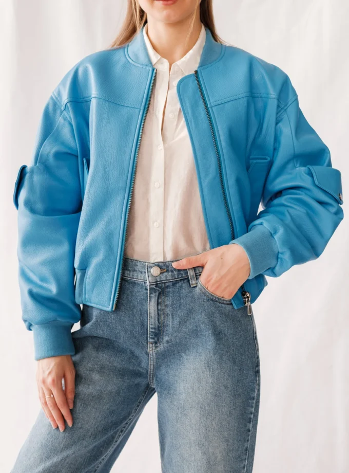Bomber Lederjacke – Blau